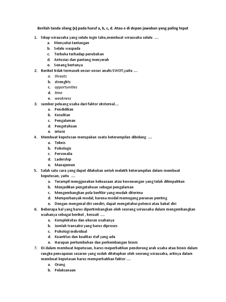 Semester pertama kelas 11 merupakan fase krusial bagi siswa dalam mendalami berbagai mata pelajaran, tak terkecuali Kewirausahaan (KWU). Materi KWU pada jenjang ini dirancang untuk membekali siswa dengan pemahaman mendalam mengenai konsep dasar bisnis, perencanaan, hingga implementasi strategi kewirausahaan. Untuk membantu siswa mempersiapkan diri menghadapi penilaian, mari kita telaah beberapa contoh soal KWU kelas 11 semester 1 yang mencakup berbagai topik penting. Artikel ini akan menyajikan berbagai tipe soal, mulai dari pilihan ganda, esai singkat, hingga studi kasus, beserta penjelasan yang relevan.